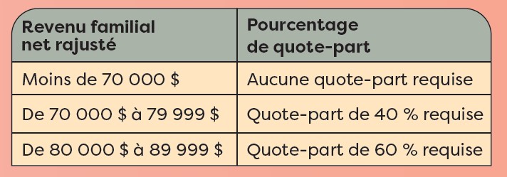 Afin de limiter les frais à la charge des personnes couvertes par le plan, les fournisseurs de soins buccodentaires qui s’inscrivent au RCSD, de façon volontaire, factureront directement le RCSD pour être remboursés et non le patient. Les personnes dont le revenu familial net rajusté est supérieur à 70 000 $ devront payer une quote-part.